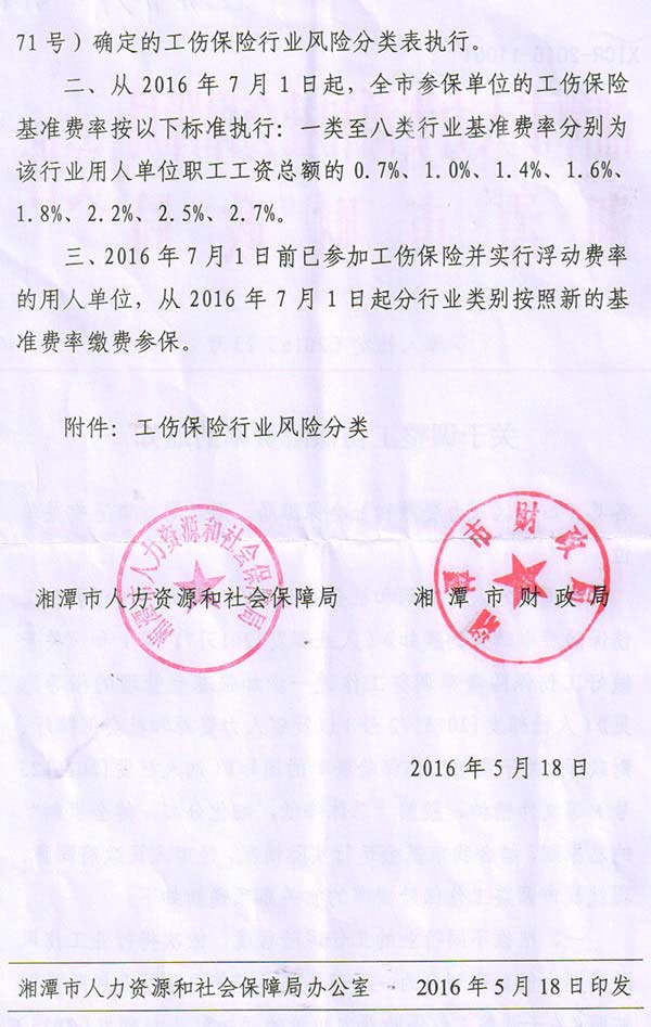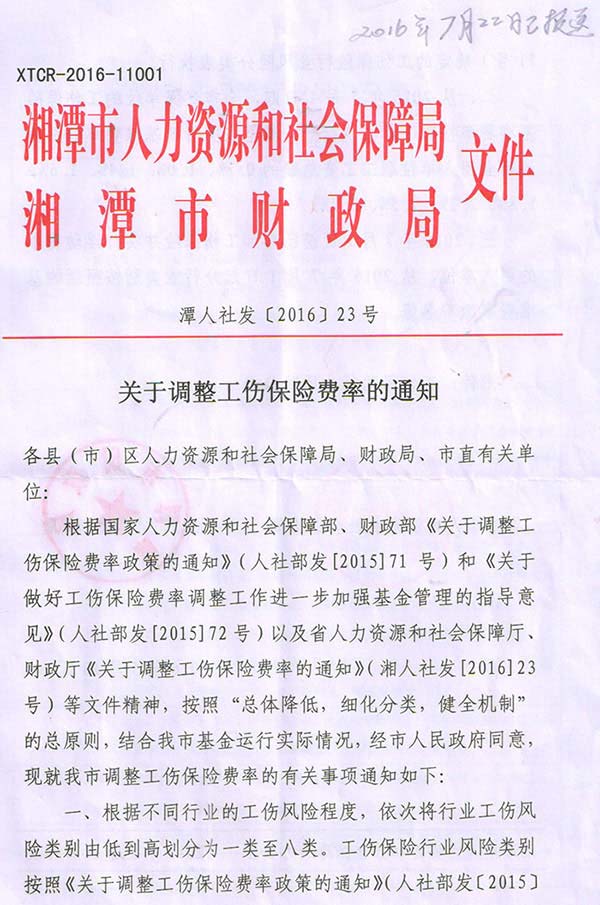 《關(guān)于調整工傷保險費率的通知》
