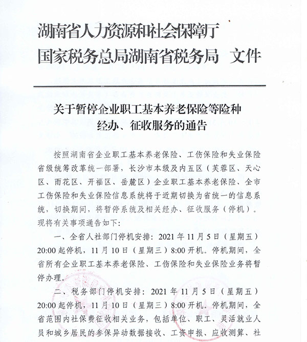 關(guān)于暫停企業(yè)職工基本養老保險等險種 經(jīng)辦、征收服務(wù)的通告