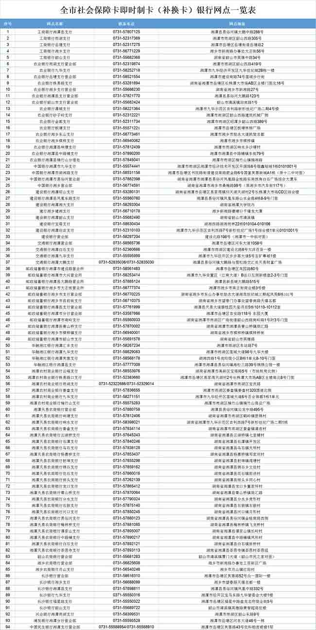 附:全市社會(huì )保障卡即時(shí)制卡(補換卡)銀行網(wǎng)點(diǎn)一覽表